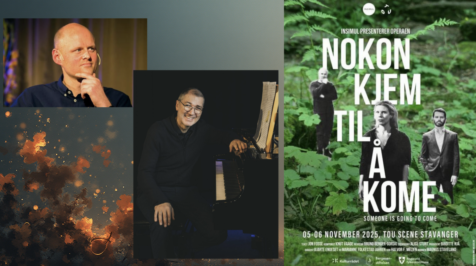 1 Nov "NOKON KJEM TIL Å KOME" (SOMEONE IS GOING TO COME) IN HAUGESUND Operaen Nokon kjem til å kome åpner nytt Fosse-senter i Haugesund den 9. november. Vennligst fin Read more